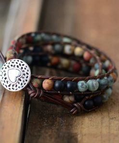 Trendy, handcrafted bracelet made of african jasper and genuine leather.